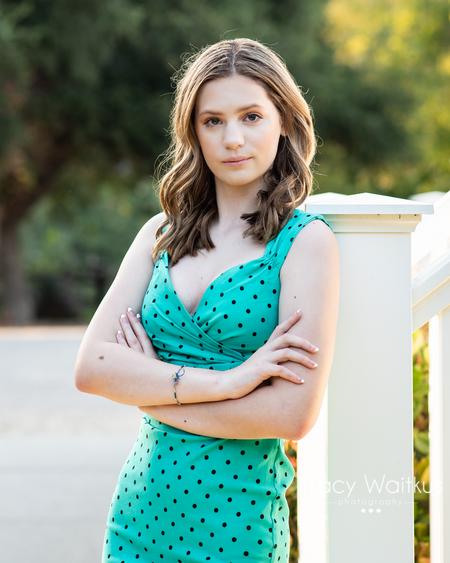 Ryan had professional hair and makeup styling by Jamie Holloway of Heritage Salon in the Arroyo Grande Village. Jamie did an amazing job making Ryan look her best for her shoot, yet allowing her natural beauty to shine through. The fun green polka dot dress was on loan from a special friend and dance teacher of Ryan's!