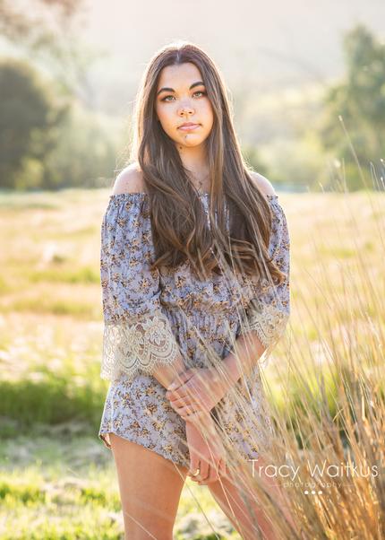 An important part of the senior portrait session planning process is making sure that outfits work well with the location. We shot Abby's model session at beautiful Higuera Ranch in San Luis Obispo, and we specifically chose outfits that were fun, flattering, and casual enough for a rural ranch setting. Abby loved this black floral dress from Bella B so much that she ended up buying it!
